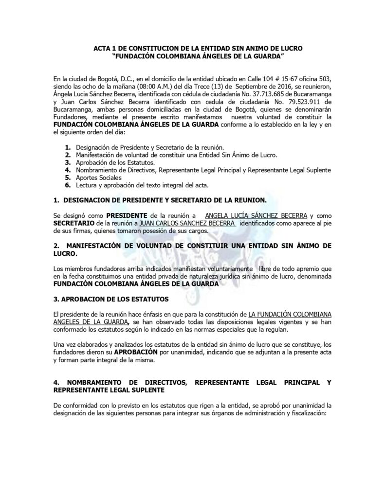ACTA DE CONSTITUCIÓN ANGELES DE LA GUARDA FUNDACIÓN