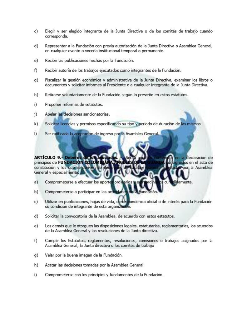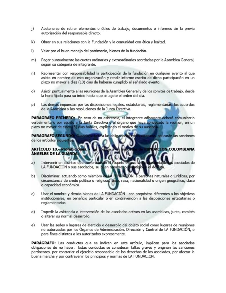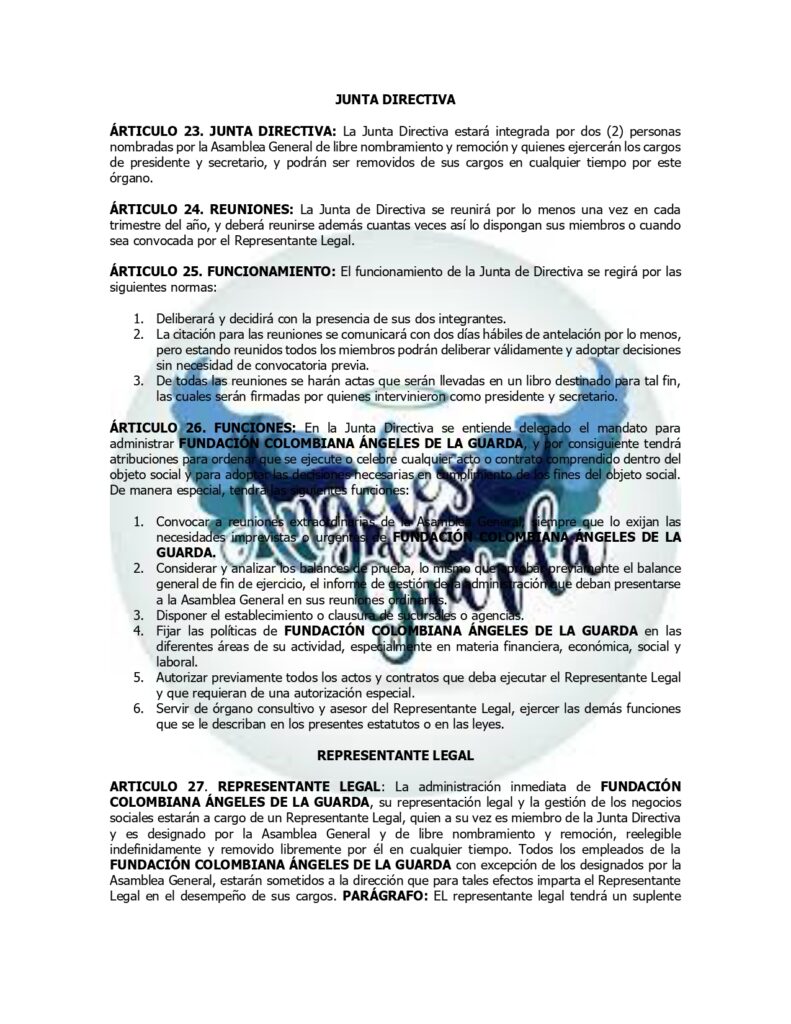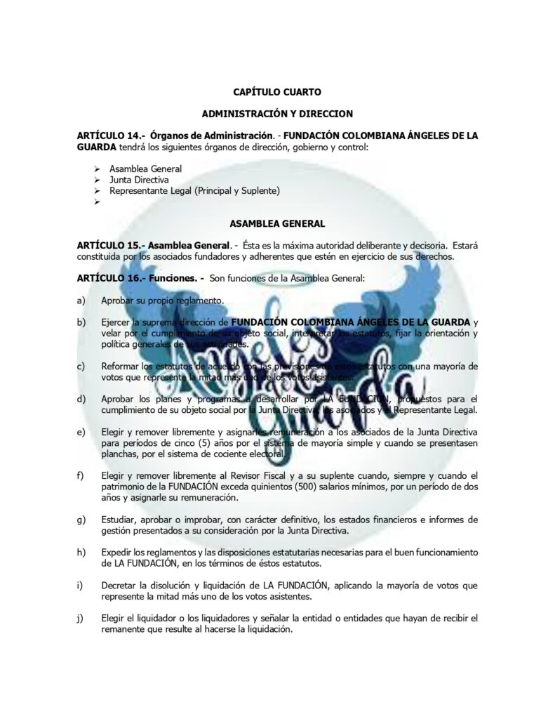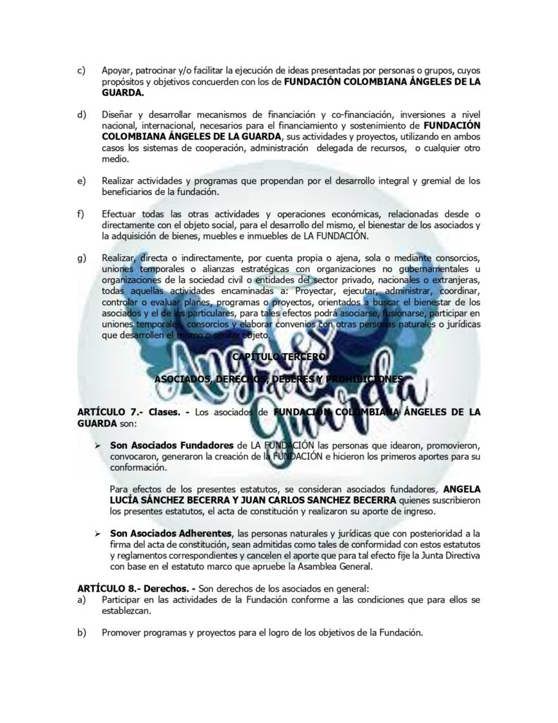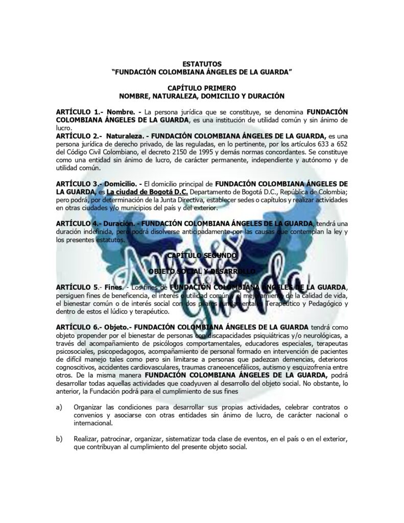 ESTATUTOS FUNDACIÓN COLOMBIANA ANGELES DE LA GUARDA