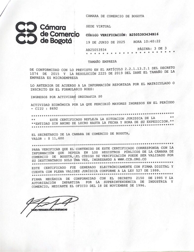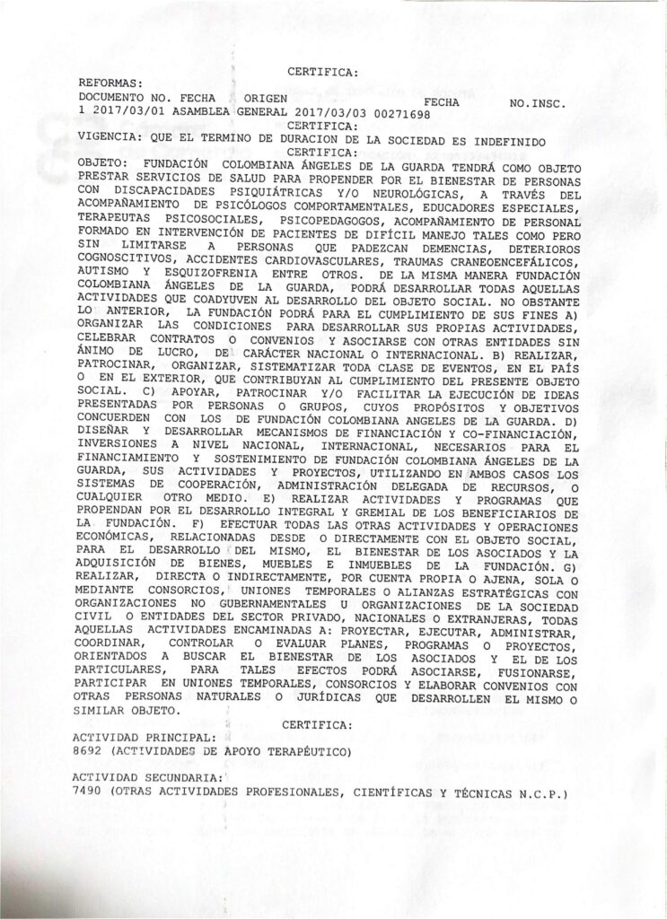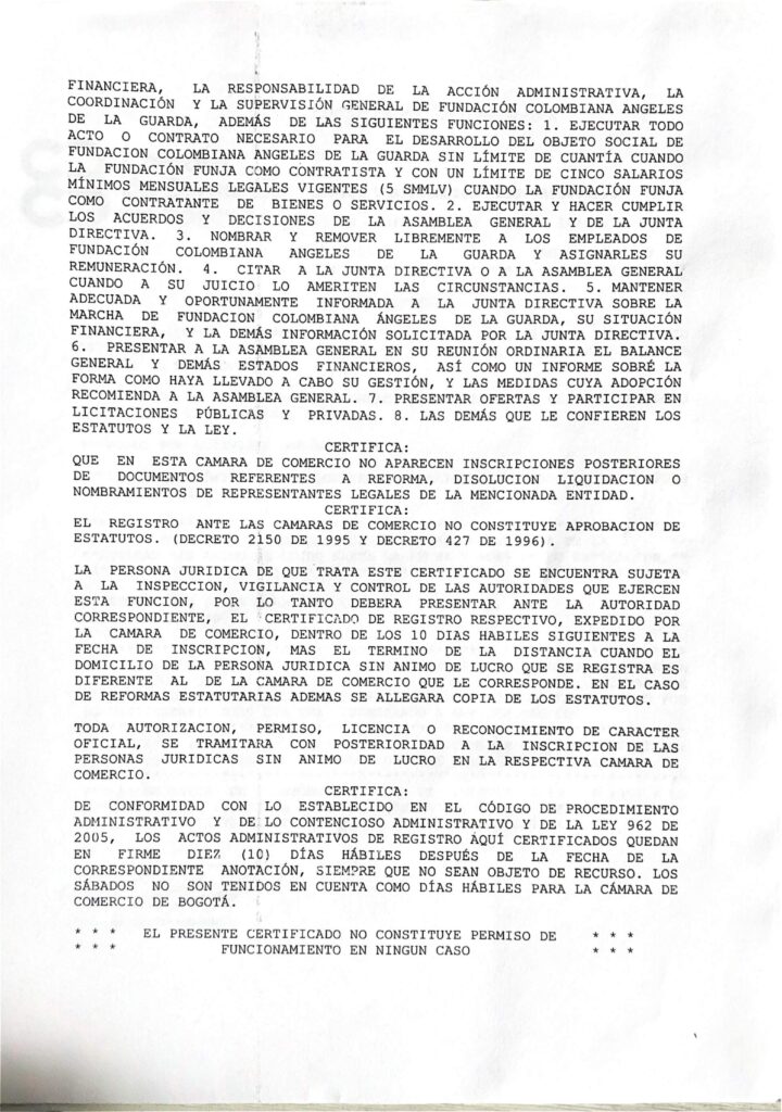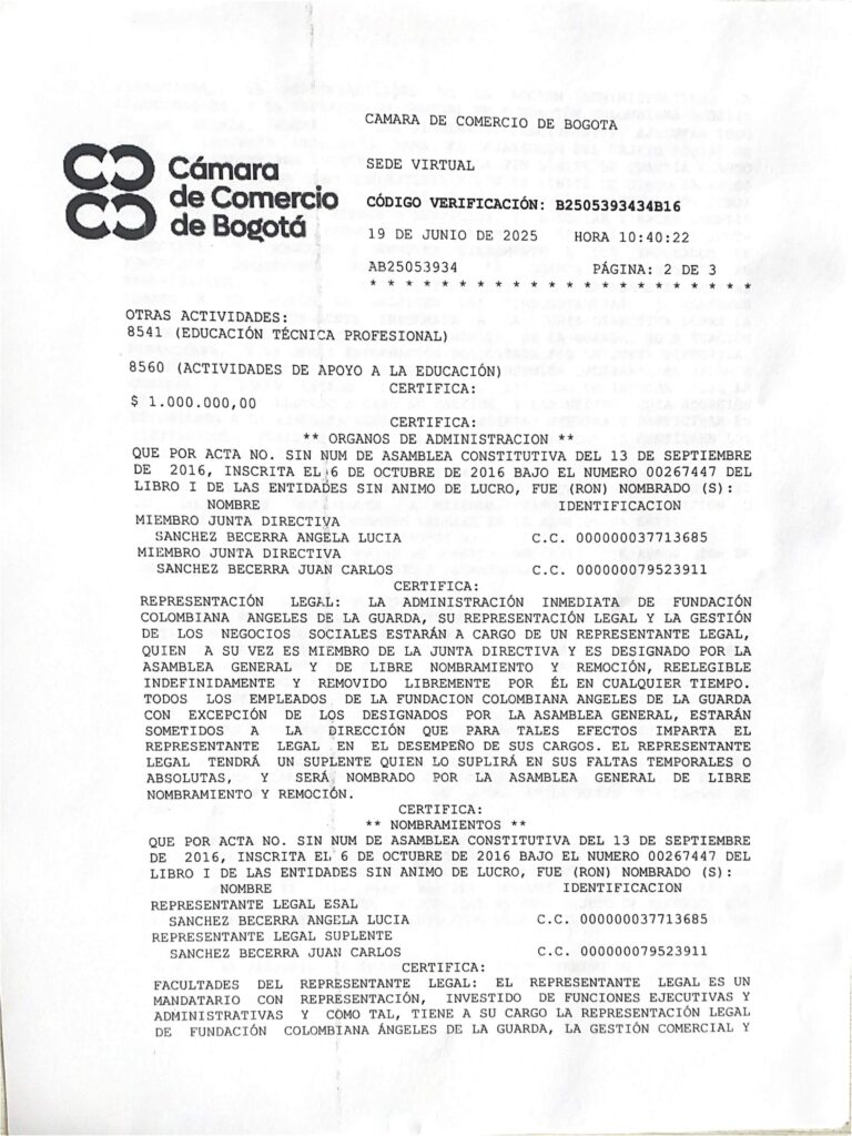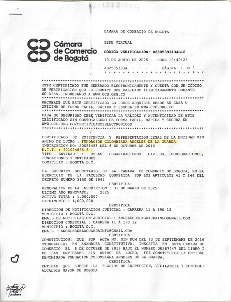 FUNDACIÓN COLOMBIANA ANGELES DE LA GUARDA CÁMARA DE COMERCIO
